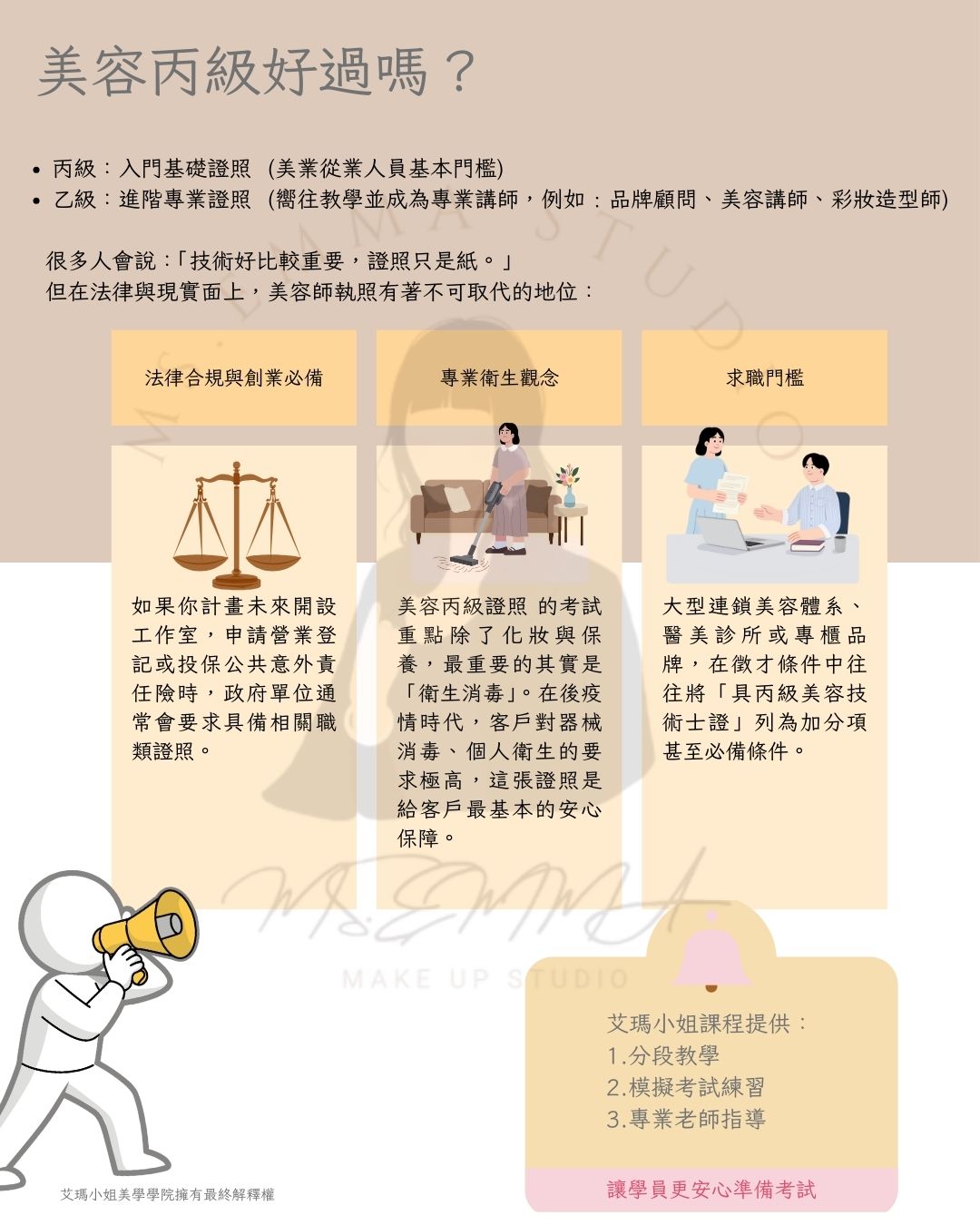 3. 求職門檻:大型連鎖美容體系、醫美診所或專櫃品牌,在徵才條件中往往將「具丙級美容技術士證」列為加分項甚至必備條件。